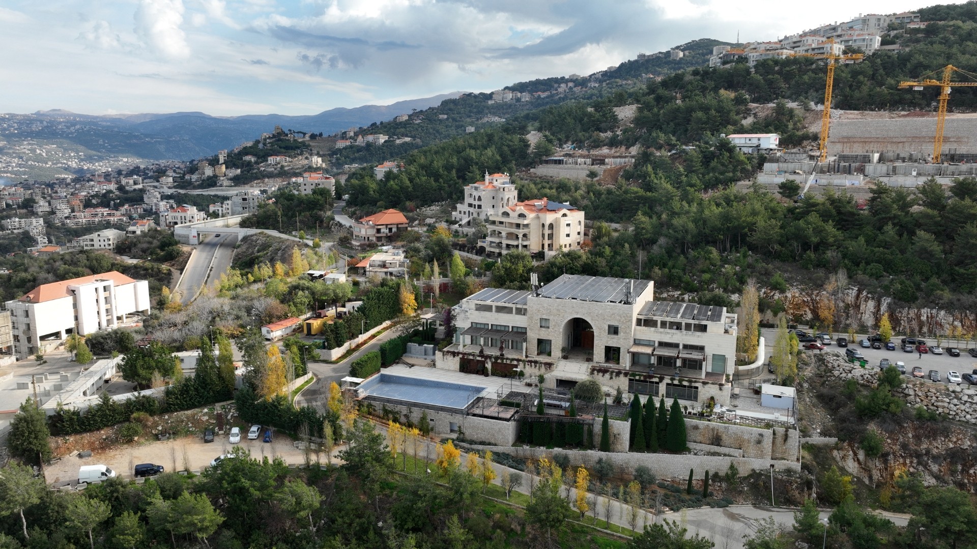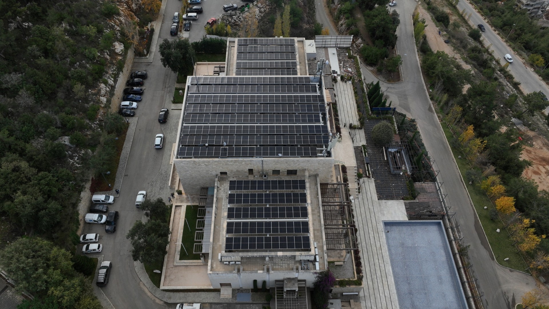 A 200 kWp grid-tied photovoltaic system designed with custom concrete rooftop structures to maximize utility and sustainability in a premier residential setting.